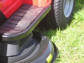 Des suppléments techniques pas désagréable, une prise externe pour mettre en charge la batterie sans rien démonter, des graisseur sur la direction, je n'ai pas testé l'attache remorque adapté d'origine mais c'est aussi un plus, on peu regretter l'absence d'auto radio |lo| mais vous pourrez bosser de nuit si vos voisins sont conciliants, en bref à ce prix un bon rapport qualité prix. Attention c'est une éjection latérale idéale pour mes 4 à 5 OOO m2 dont une partie n'est pas entretenue régulièrement, non par flemme mais tout simplement pour garder un aspect nature et offrir des repères à la faune, abeilles, papillons....Donc même avec de l'herbe relativement haute je n'ai pas rencontré& de soucis, et un deuxième passage en KIT mulching le terrain est relativement propre, je vis à la campagne donc pas les mêmes critères que si j'étais en lotissement.