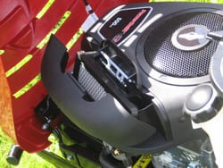 De présentation classique ce modèle distribué par Sabre France sous la marque SARP est un Castel Garden, ce n'est pas un tracteur haut de gamme mais quand même un produit de qualité, idéal pour des terrains de 3 à 5 000 m2, sont éjection latérale ne favorise pas le ramassage et le KIT Mulching n'est pas vraiment une réussite. Vous l'avez compris cette autoportée s'adresse à des clients qui possèdent un terrain assez vaste mais pas spécialement une pelouse green. Personnellement je l'utilise sur 4500 m2 toutes herbes avec une coupe pas toujours régulière, donc parfois une herbe assez haute ce qui ne fait pas rechigner le moteur BRIGGS & STRATTON INTEK OHV AVS de 508 cc pour 13.8 kw (18 cv) bien entendu bridé, pour respecter les normes bruits et pollution, néanmoins développant une puissance largement suffisante.